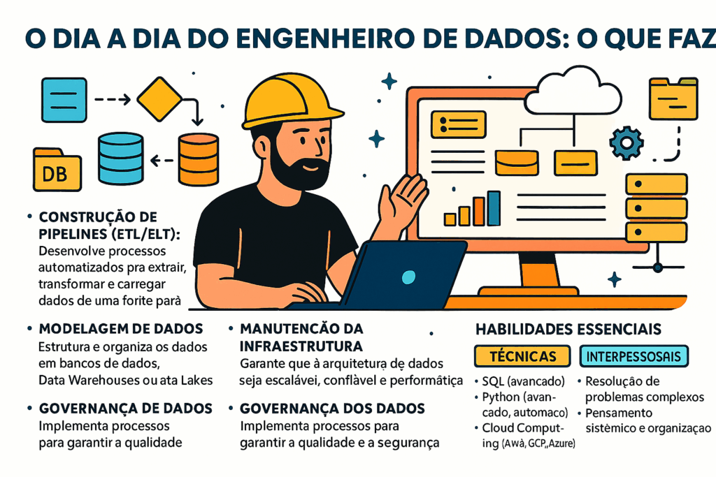 - Manutenção da Infraestrutura: Garante que a arquitetura de dados seja escalável, confiável e performática.